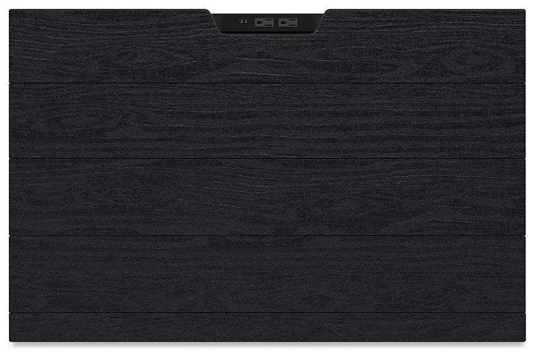 Details | B768B5: Includes headboard, footboard and rails, Made with pine solids, veneers and engineered wood substrate, Textured black wood stain with waxy topcoat, Extra wide rails for a bench-like wrap around, Foundation/box spring required, sold separately, Mattress available, sold separately, Assembly required, B768B1: Includes dresser and mirror, Made with pine solids, veneers and engineered wood substrate, Textured black wood stain with waxy topcoat, Hardware-less design, 6 drawers with fully finished interiors, dovetail construction and ball-bearing side glides (top drawers felt lined), Mirror attaches to back of dresser, B768-92: Made with pine solids, veneers and engineered wood substrate, Textured black wood stain with waxy topcoat, Hardware-less design, 2 drawers with fully finished interiors, dovetail construction and ball-bearing side glides, 110V power supply with dual USB charging ports, Power cord included; UL Listed, | |