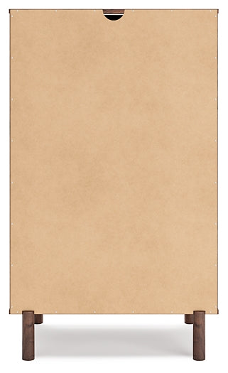 At the intersection of industrial cool and chic sophistication, you’ll find this chest of drawers. With a rich brown finish over replicated walnut wood grain, paired with burnished goldtone handles, it offers an authentic touch that plays well any way you style it. Simple and elegant in its design, this piece keeps your home decor grounded while elevating your modern style.