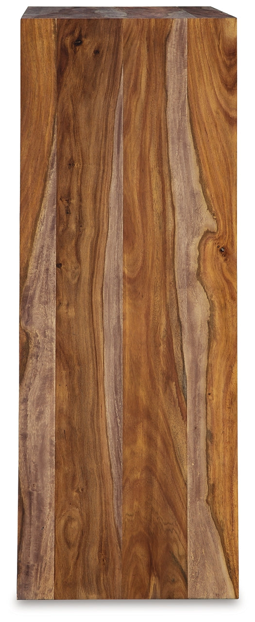 Details | Made with sheesham wood, veneer and MDF substrate, Clear natural wood-tone finish, Front frame with thick beveled edge, 5 smooth-gliding drawers with fully finished interior, dovetail construction and heavy duty ball-bearing side glides | |