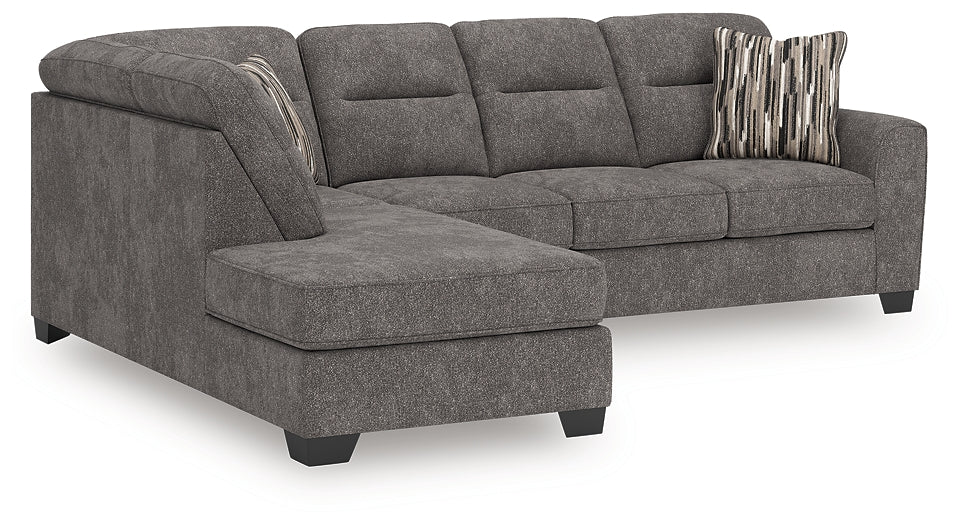 Details | Includes 2 pieces: left-arm facing corner chaise and right-arm facing sofa, “Left-arm” and “right arm” describe the position of the arm when you face the piece, Corner-blocked frame, Attached back and loose seat cushions, High-quality foam cushions wrapped in poly fiber, Accent pillows included, Pillows with soft polyfill, Polyester upholstery, Exposed feet with faux wood finish, Platform foundation system resists sagging 3x better than spring system after 20,000 testing cycles by providing more even support, Smooth platform foundation maintains tight, wrinkle-free look without dips or sags that can occur over time with sinuous spring foundations | |