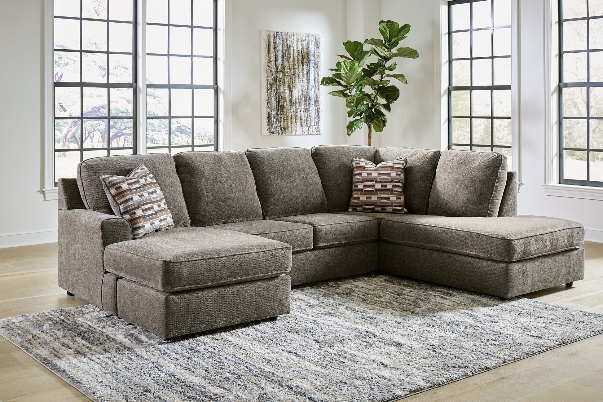 Details | Includes left-arm facing sofa chaise and right-arm facing corner chaise, Corner-blocked frame, Attached back and loose seat cushions, High-quality foam cushions wrapped in poly fiber, Polyester upholstery, Accent pillows included, Pillows with soft polyfill, Platform foundation system resists sagging 3x better than spring system after 20,000 testing cycles by providing more even support, Smooth platform foundation maintains tight, wrinkle-free look without dips or sags that can occur over time with sinuous spring foundations | |