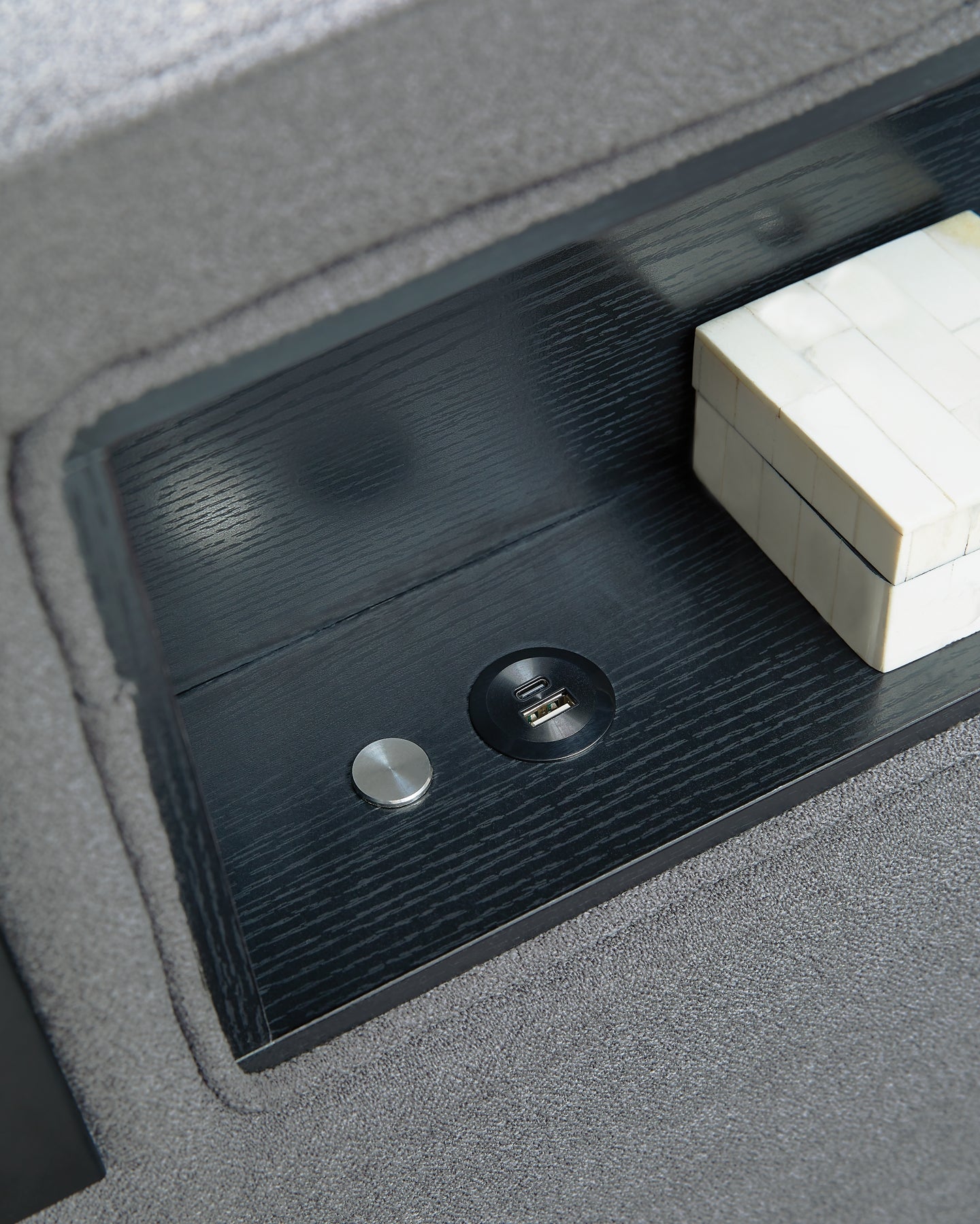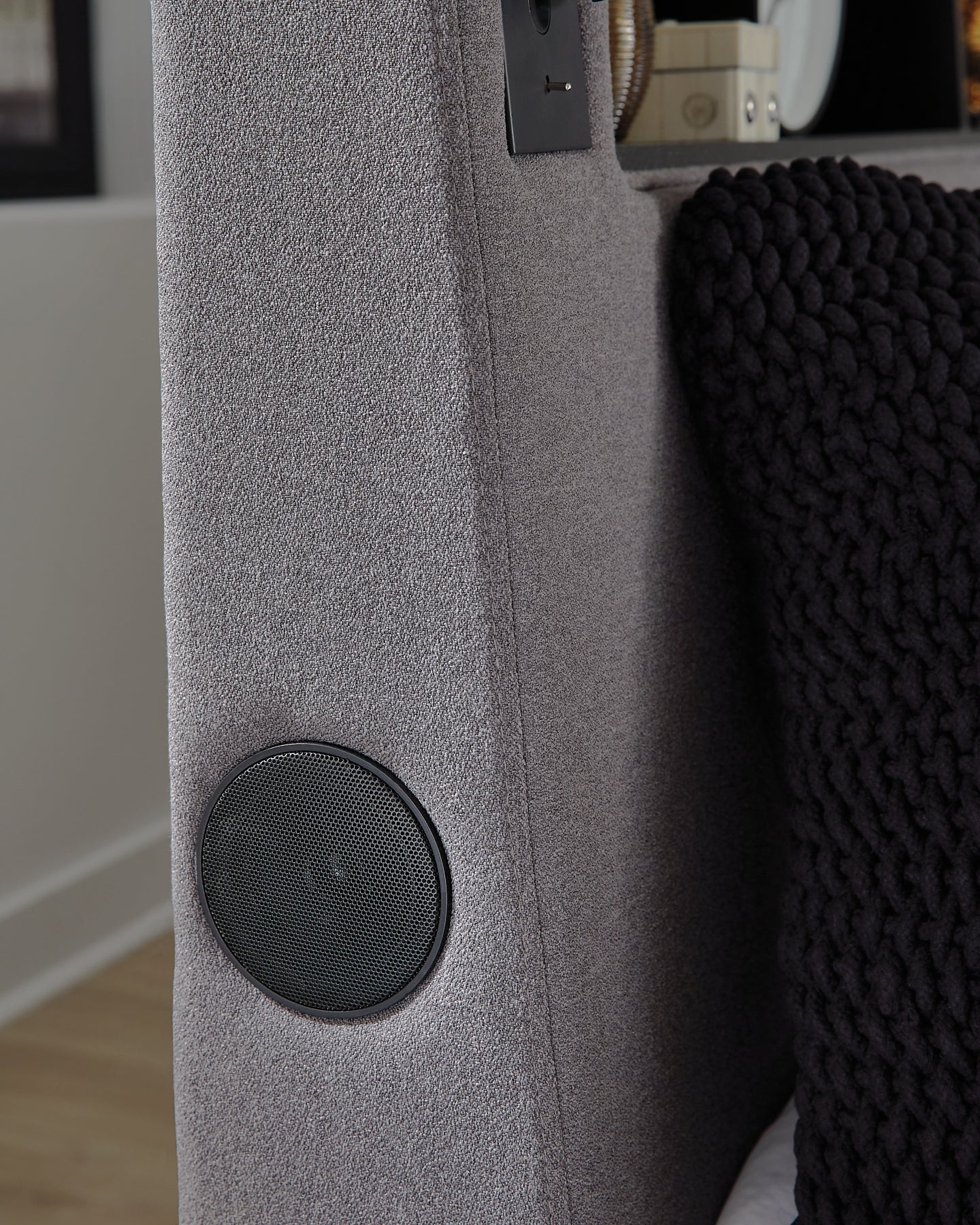 Snooze in style with this California king upholstered bed. It brings delightful function to winding down before bedtime, with an adjustable LED reading light on each side. And for added flair, multicolored ambient lighting brings an ultra-cool vibe to the overall look. Combining modern convenience with captivating design, this bed revamps your restful retreat like never before.